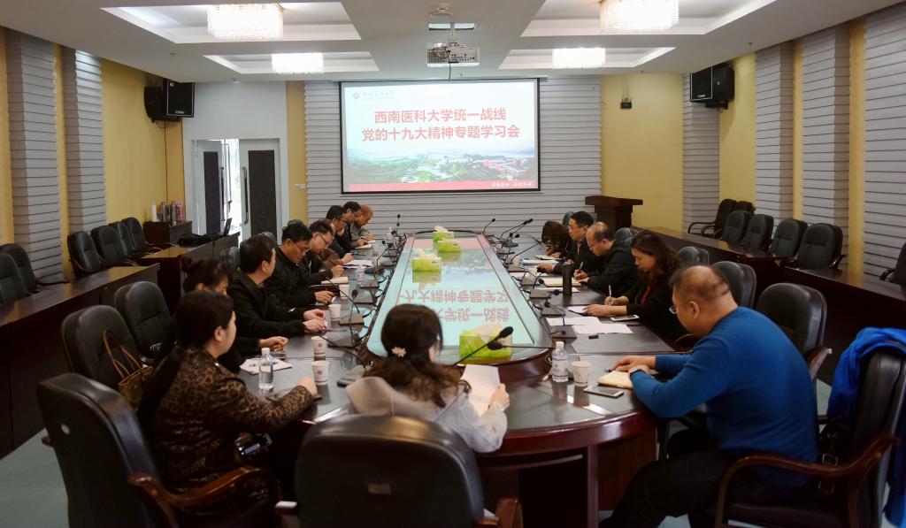 廖斌强调,学习宣传贯彻党的十九大精神,是当前和今后一个时期全校上下首要的政治任务。学校各级党组织和各单位、各部门要立即行动起来,坚定用习近平新时代中国特色社会主义思想统领学校事业发展,推动党的十九大部署要求在西南医科大学落地生根、务见实效。一是学习好。要迅速在全校掀起学习贯彻党的十九大精神的热潮,确保学习全动员全覆盖,做到学深学透、融会贯通,切实把十九大精神内化于心、外化于行。二是宣传好。要充分发挥学校党委理论讲师团作用,采取座谈会、报告会、研讨会、主题党团日活动等多种形式,推进党的十九大精神入脑入心。同时要充分利用校报、校园网、橱窗、电子显示屏等传统媒体和微博、微信等新兴媒体,营造学习宣传贯彻党的十九大精神的浓厚氛围。三是结合好。要大力弘扬理论联系实际的作风,坚持学以致用、以用促学,把学习贯彻党的十九大精神与“两学一做”学习教育常态化制度化、与学校事业发展、工作实际相结合,切实推动学校各项事业再上新台阶。四是落实好。要按照“3个全力以赴”“3个全面提升”“3个必须做好”的总要求,圆满完成今年各项工作任务,奋力开启学校事业发展新征程,为谱写中国梦西南医科大学篇章而不懈奋斗。