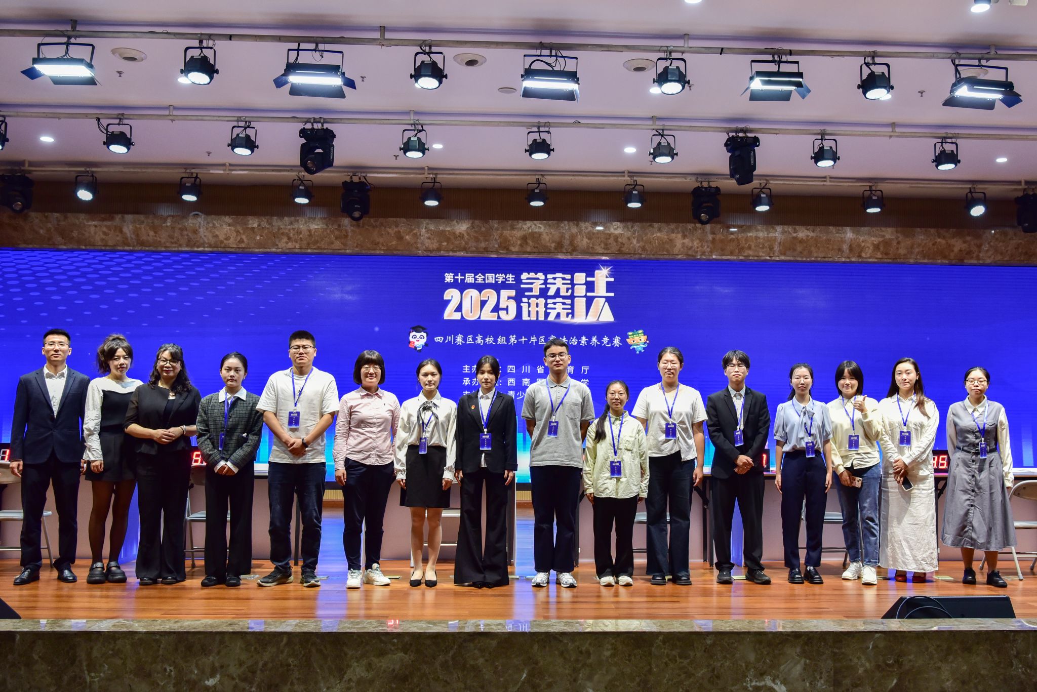为深入学习贯彻习近平法治思想,加强学生法治意识与观念,弘扬宪法精神,维护宪法权威,培养具有法治素养的新时代青年,1015日,由四川省教育厅主办、青少年法治中心提供专业支持、我校承办的第十届全省学生“学宪法 讲宪法”活动高校组第十片区法治素养竞赛在我校成功举行。来自西南科技大学、绵阳师范学院、四川化工职业技术学院等7所高校的学子同台竞技,展开了一场智慧与法治素养的巅峰对决。