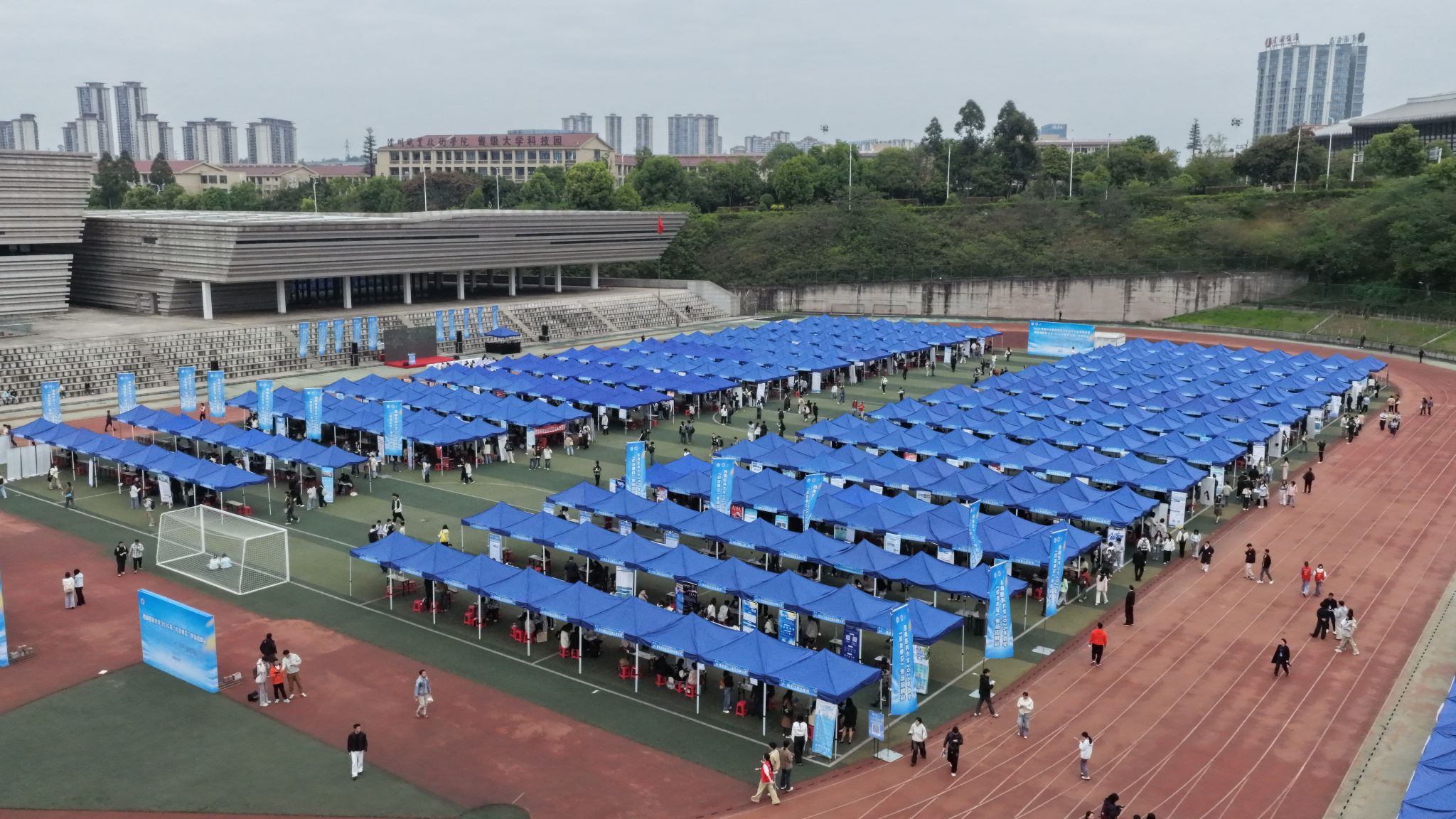 为抢抓春招就业高峰季,搭建用人单位与毕业生精准对接平台,切实拓宽毕业生就业渠道,促进毕业生高质量充分就业,4月1日上午,由四川省教育厅、四川省卫生健康委员会联合主办的“蜀汇菁英”四川省高校毕业生就业常设市场(医药健康产业类)专场招聘会暨西南医科大学2026年春季校园大型双选会在城北校区青年体育场足球场顺利举行。本次双选会汇聚了省内外380余家用人单位,提供就业岗位近万个,吸引了校内外3000余名毕业生到场求职,现场气氛热烈,供需两旺。
