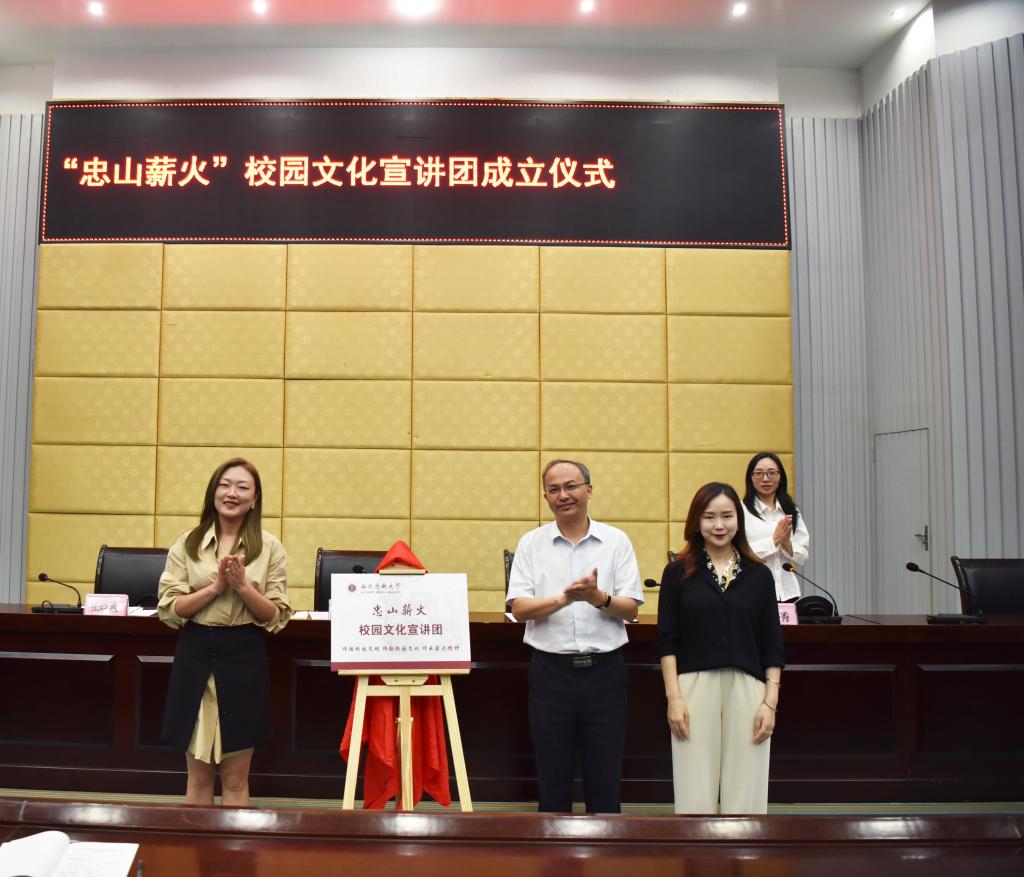 与会代表共同为“忠山薪火”校园文化宣讲团揭幕。