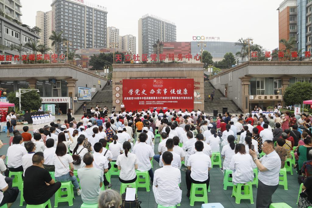 6月26日,西南医科大学附属中医医院在天立社区举行“学党史 办实事 促健康”庆祝中国共产党成立100周年中医药健康服务进社区暨院地合作签约仪式。泸州市人民政府副秘书长胡晓玲、龙马潭区委书记靳地胜、龙马潭区政府区长徐兵、泸州市卫健委副主任汪世平,西南医科大学主持行政全面工作副校长张春祥、西南医科大学附属中医医院党委书记李志、院长刘建等党政领导,全体党支部书记,临床第十党支部、科研党支部全体党员,相关职能部门负责人及部分临床科室医护人员等参加了仪式。仪式由龙马潭区委常委、组织部部长、区政府党组成员袁瑞主持。