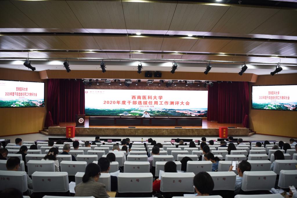 会上,学校同步进行了干部选拔任用“一报告两评议”工作。廖斌代表学校领导班子对2020年度干部选拔任用工作进行了专题报告。