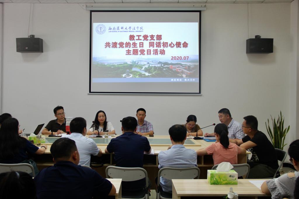 为进一步加强党性教育,强化党员的身份意识和责任意识,激励党员模范敬业做贡献,7月1日,法学院教工党支部举办了“共贺党的生日,同话初心使命”主题党日活动,在庆祝建党99周年节日的同时,为21名上半年入党的党员同志过集体“政治生日”。活动由法学院教工支部书记邵帅主持。