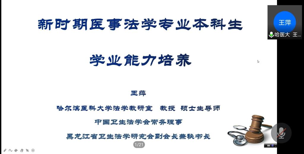 11月25日晚,由法学院、四川医事卫生法治研究中心、《医学与法学》编辑部、西南医科大学司法鉴定中心共同主办的法学专业创办20周年系列学术讲座暨“医学与法学”论坛第90讲在腾讯会议上举行。本次讲座邀请到了中国卫生法学会常务理事、黑龙江省卫生法学研究会副会长兼秘书长、哈尔滨医科大学人文社会科学学院法学教研室主任王萍,作了题为“新时期医事法学专业本科生学业能力培养”的专题讲座。法学院全体师生参加了本次讲座,讲座由法学院党总支副书记黄莉主持。