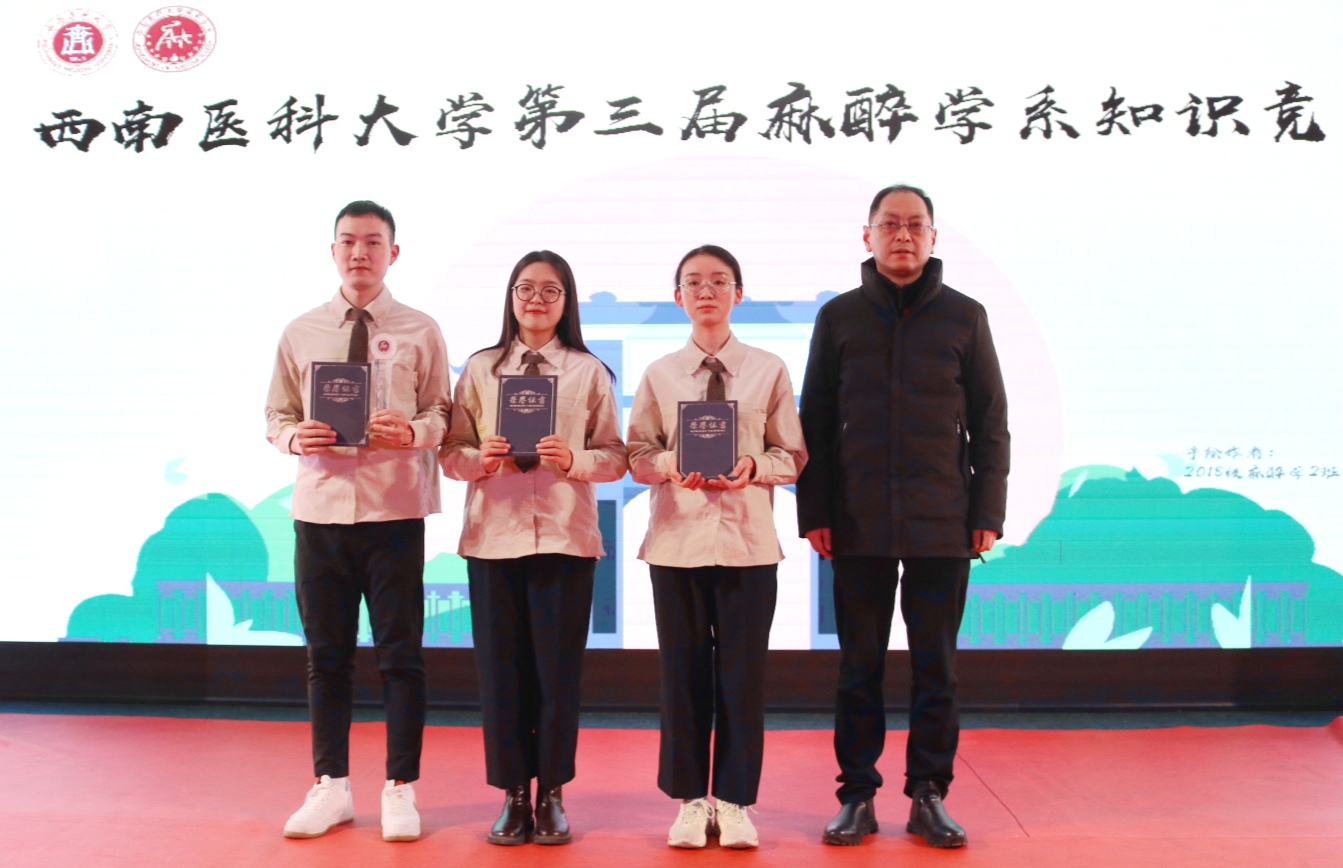 12月18日晚,西南医科大学第三届麻醉学知识竞赛决赛于附属医院外科大楼学术报告厅举行,临床医学院党委副书记黎靖、教务处副处长刘力、校团委书记石惠、学工部副部长崔继东等学校各部门领导和麻醉学系全体领导教师观看了比赛,麻醉学系各年级学生到场观摩,比赛同时全程线上直播,利用易班平台进行线上互动。