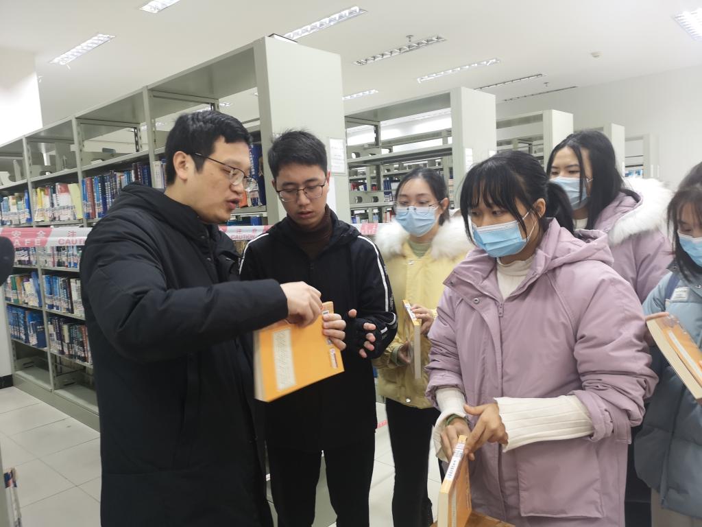 培训中,吴强老师详细介绍了书籍的剔旧、整理以及密集书库的业务工作。勤工俭学的学生们按照他讲述的方法亲自动手操作,熟悉了密集书库书籍入库流程。