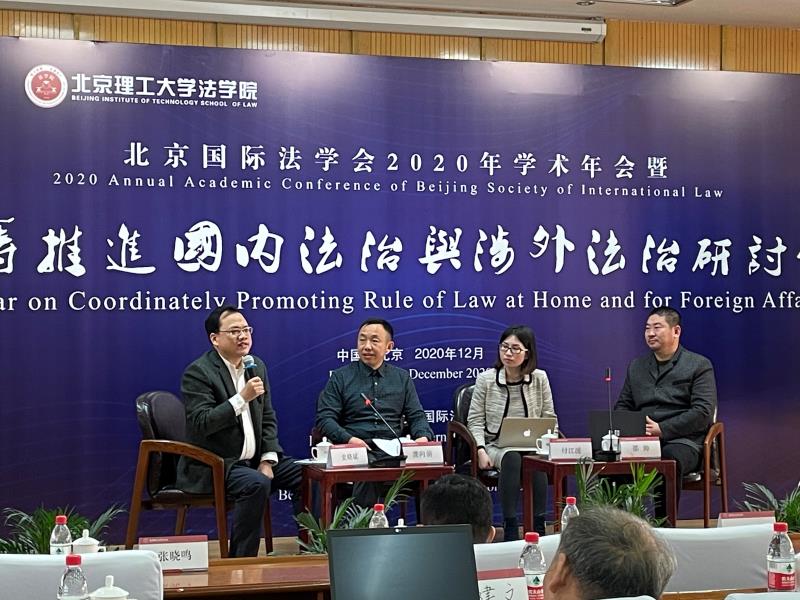 12月25-27日,由北京国际法学会主办的北京国际法学会2020年学术年会暨“统筹推进国内法治与国际法治”研讨会在北京理工大学召开。来自外交部、司法部、商务部、中国国际贸易促进委员会等相关政府机构,以及高等院校、科研院所的一百多位专家、学者共聚一堂,400余人通过网络视频方式参会。法学院副教授邵帅应邀参加了此次研讨会,并作了交流发言。