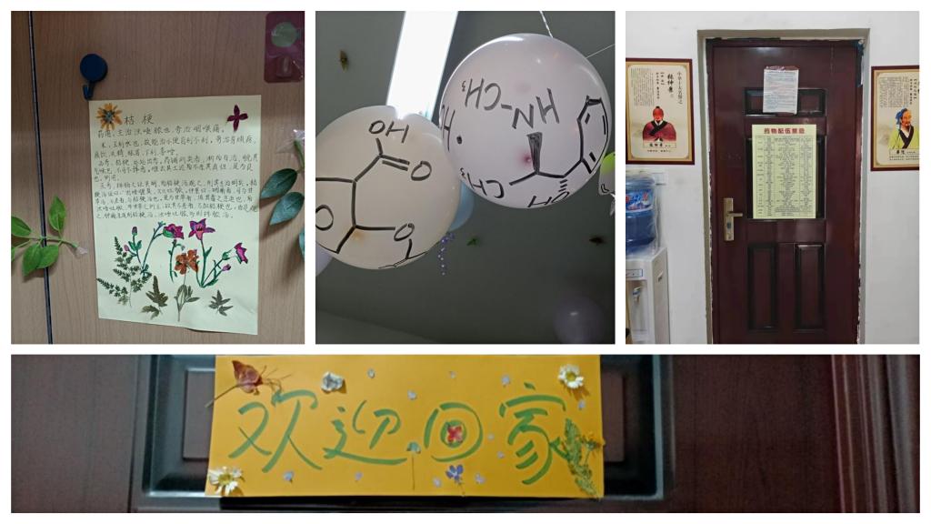 活动过程中,宿舍同学集思广益,充分发挥想象力,将药文化、党史学习教育与专业知识相融合,利用药物标本、药物盆栽等药元素美化和装饰寝室,营造出温馨、舒适的寝室氛围。