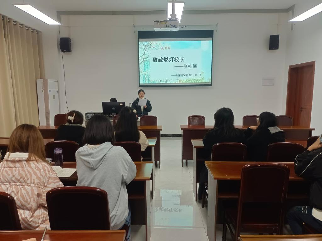 11月19日晚,外国语学院在文渊楼134会议室举办了“致敬燃灯校长张桂梅”资助育人活动。活动由外国语学院学生会组织,学院40余名家庭经济困难学生参加。