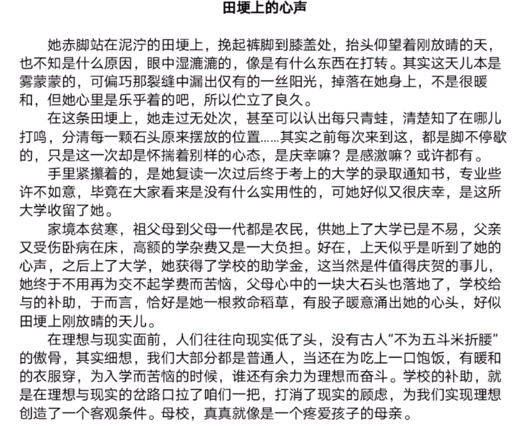 征文比赛中,同学们踊跃参与,提供了146篇文章。最终,评委小组选取一等奖2名,二等奖5名,三等奖10名,作品内容展示了同学们对于获得各类资助的感悟,呈现出新时代大学生积极向上的价值观。知识竞赛中,423名同学参与了易班线上答题课群,竞赛共80个题目,题目均与本科生资助制度相关,随机抽取30个题目作答,正确25题及以上为及格。知识竞赛检验了同学们学习资助政策的效果,同时也进一步普及了各项资助政策。