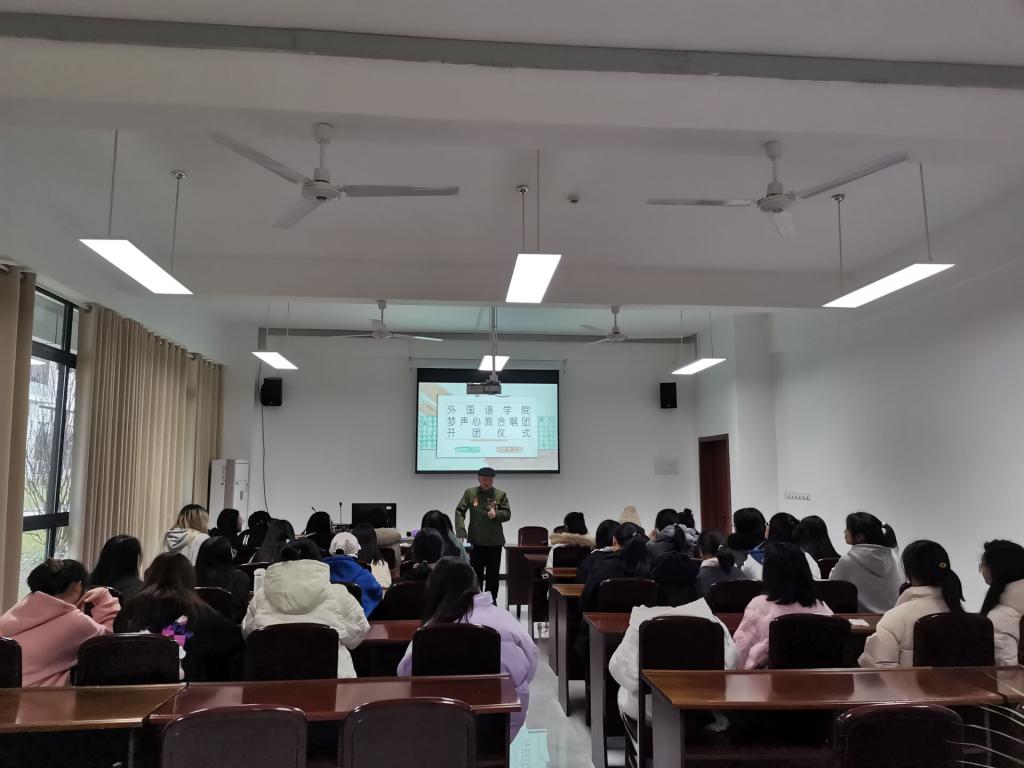 12月12日下午,外国语学院在文渊楼134会议室举行了“梦声心旅”合唱团成立和开团仪式。合唱团指导老师胡开文同志、外国语学院党总支副书记邓盛木、合唱团全体成员参加了仪式。仪式由外国语学院党总支书记周晓昀主持。