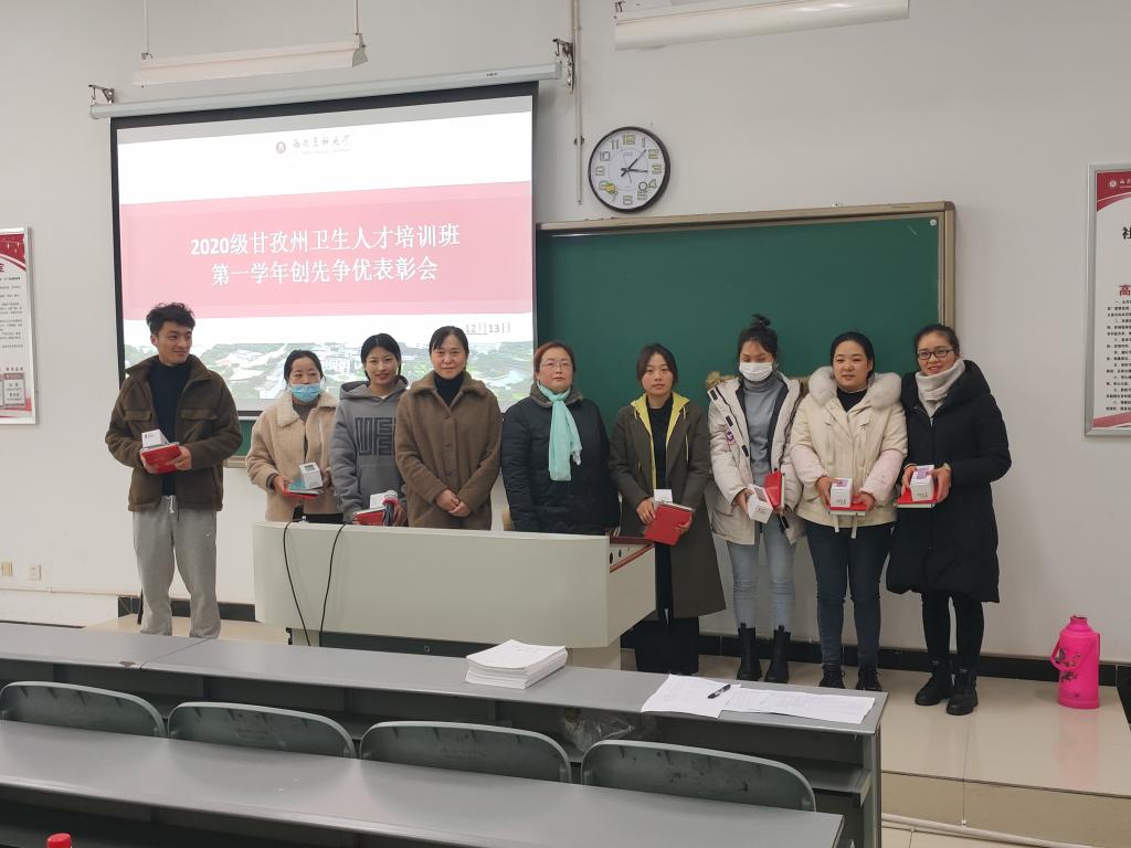 12月14日下午,2020级甘孜班学年创先争优表彰会在海川楼508教室召开,继续教育学院学生科科长刘芳,班主任杜鹏伟和60名学员参加了表彰会。会议由杜鹏伟主持。