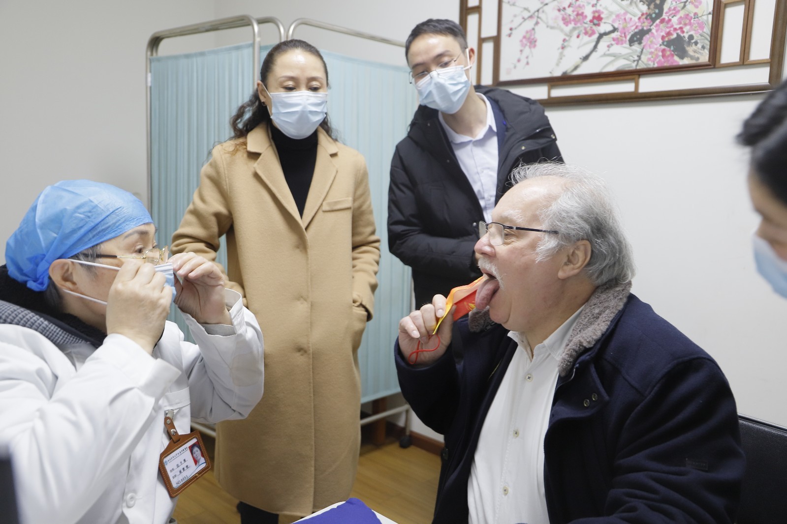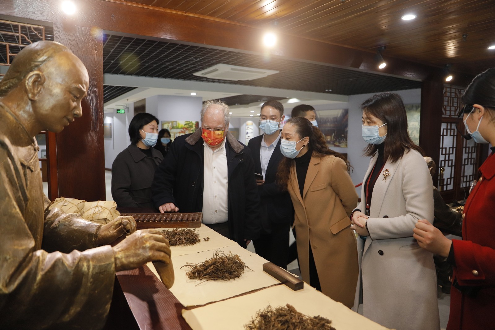 库尔兹一行实地考察了西南医科大学附属中医医院中医药国际交流合作及中医药产品研发情况,参观了西南医科大学附属中医医院名医馆、中医药文化博物馆•院史馆、经典中医诊疗中心等地,体验了中医的望闻问切。
