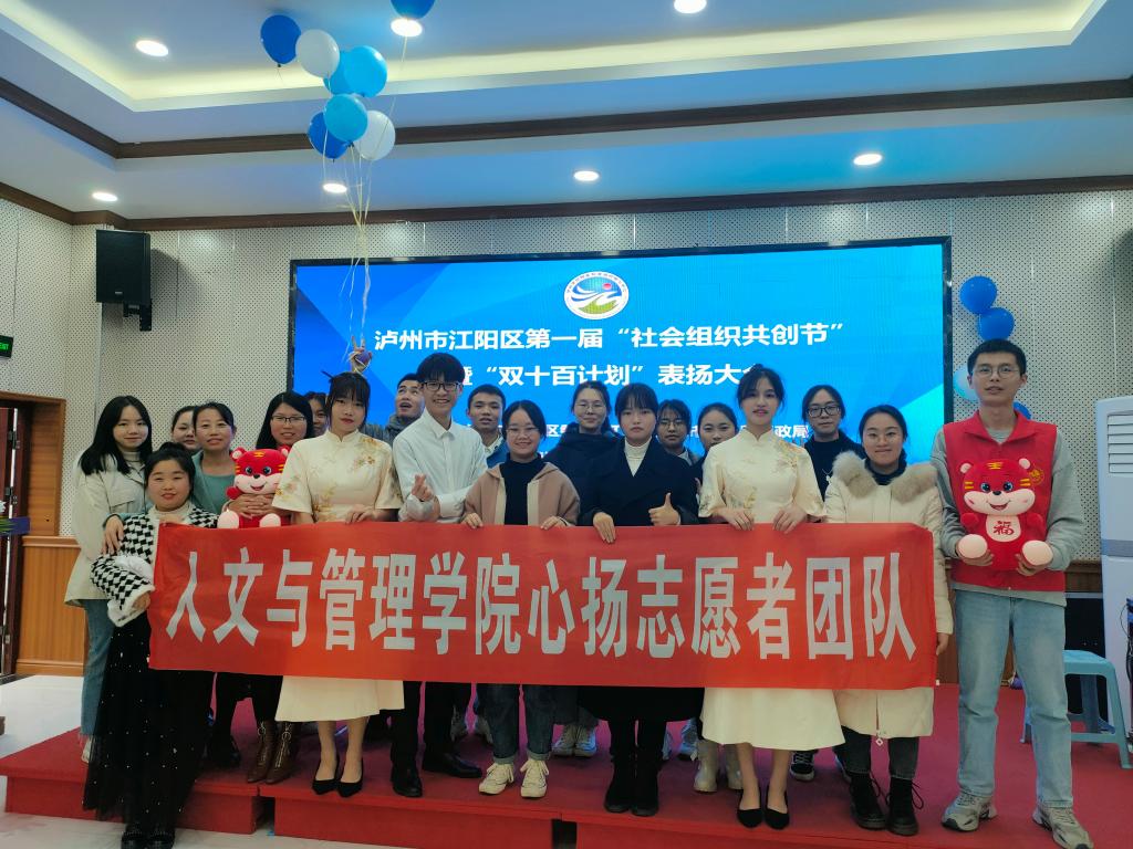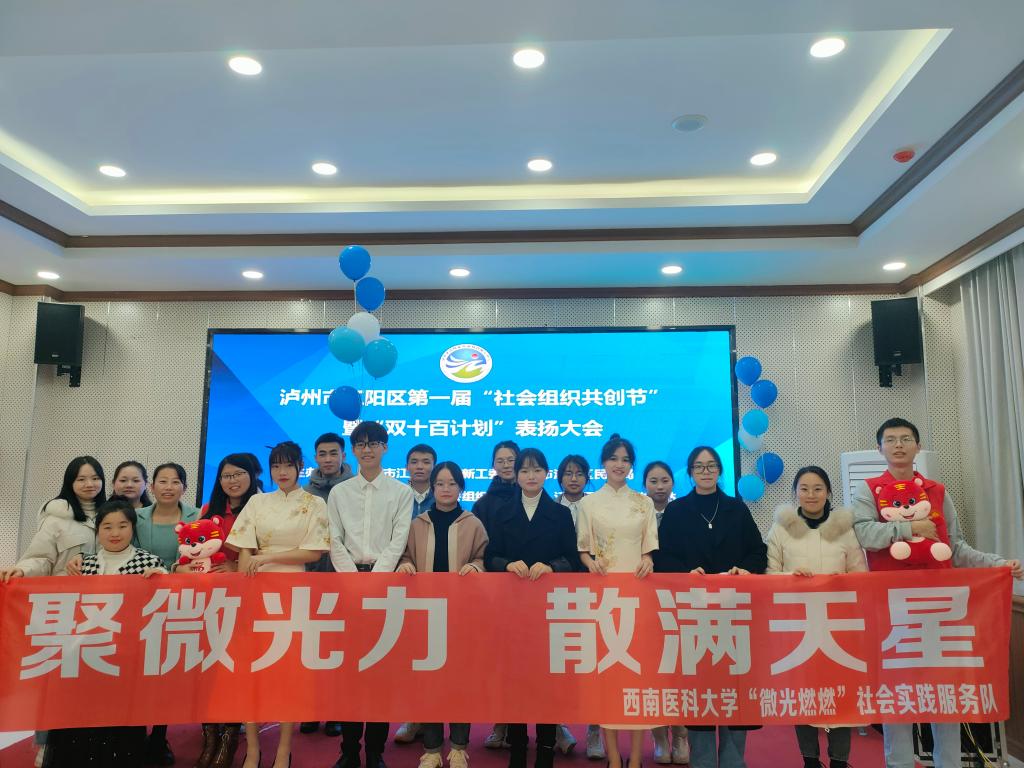 冬阳沐暖风,助人永传承。为推进人文与管理学院劳动育人工作,加速校地合作,彰显社会工作与志愿服务在新时代、新征程中的功能作用。1月5日,由泸州市江阳区民政局、泸州市江阳区两新工委主办,泸州市江阳区社会组织孵化中心、江阳区社会工作总站承办的江阳区第一届“社会组织共创节”暨“双十百计划”表扬大会在江阳区社会组织孵化中心举行,西南医科大学人文与管理学院职工第二党支部书记万美君、党员教师温艳青等带领心扬志愿者及“微光燃燃”社会实践服务队参会。参会旨在一方面对照先进、学习先进、提升自我;另一方面开展社会实践、服务基层社区治理。