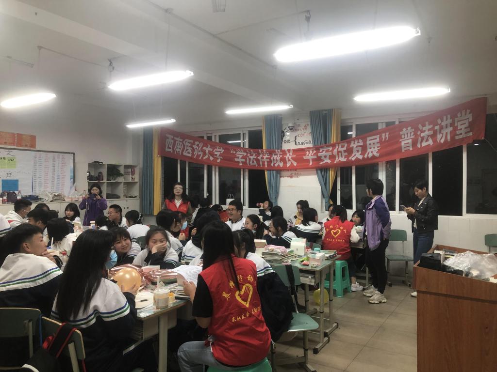 2022年4月5日晚,我校“学法伴成长 平安促发展”普法讲堂走进泸州天立学校。本次活动由法学院党总支副书记黄莉带领9名学生志愿者,进入高一年级班级开展普法活动。