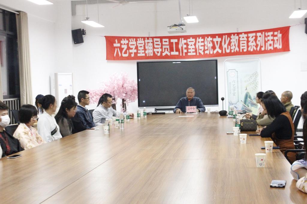 月15日晚,六艺学堂辅导员工作室邀请了黄老辟谷养生法创始人,“大中医”理念倡导者巴中全在文渊楼233室通过线上和线下相结合的形式,为学校1000余名学生开展了主题为“黄老智慧”的中医传统文化宣讲活动。人文与管理学院党总支副书记马俊出席了本次活动,活动由人文与管理学院学生会罗亚灵同学主持。