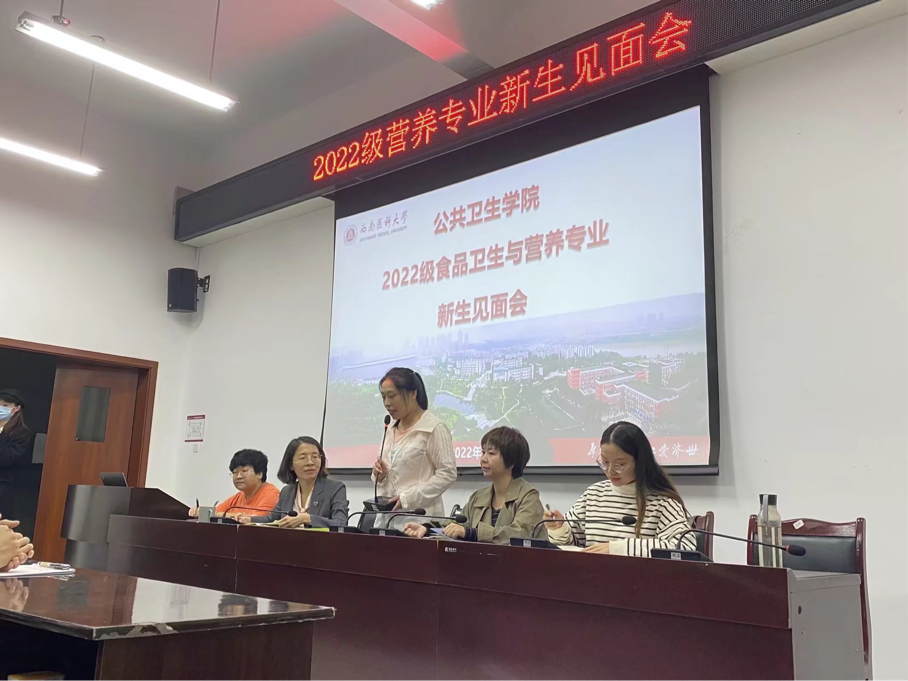 为促进食品卫生与营养学专业新生更好地适应大学生活,10月7日下午,公共卫生学院2022级食品卫生与营养学专业新生见面会在仁济楼319召开。营养教研室副主任杨艳主持本次见面会,公共卫生学院院长马玲、营养教研室且亚玲、陈玥、韩楠参会。