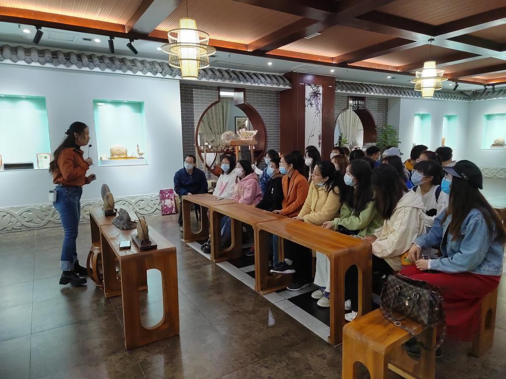 奇石博物馆讲解员朱七七为师生们讲解了长江奇石文化的发展历程与未来前景,她指出长江奇石具有政治、历史、文化、艺术、观赏和经济等多方面的宝贵价值,“赏长江奇石,品人生百味”。泸州市长江奇石文化研究会研究员周云刚为同学们讲解长江奇石的赏析方法,珍品级长江奇石需要满足“形、色、质、纹、意、韵、局、神”,赏石要尊重中华民族优秀传统文化原则,倡导“和谐、文明、自然、高雅”理念。