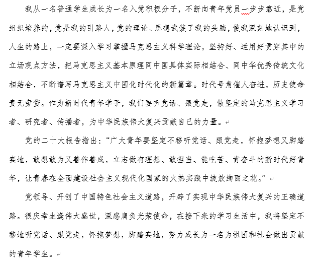 此次活动旨在让广大受助学子认真学习党的二十大精神,感恩国家资助、领悟教育意义、奉行强国之举、贡献一己之力。活动发布便收到了大量征文作品,参赛同学用文字写下对于党和国家资助政策的感恩之情,感恩党和国家在他们的求学路上撑起了一把绿伞,助力梦想远行。同时,他们以生动质朴的语句立下誓言,决心为祖国伟大事业的建设贡献自己的一份力量。