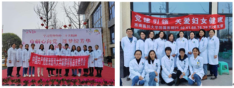 3月8日上午,为服务群众,深入学习贯彻落实党的二十大精神,西南医科大学附属医院第25、40、41、68、76、79、83党支部组织妇科、产科、乳腺外科、麻醉科、疼痛科、手供一体科等科室专家前往泸州市龙马潭区胡市镇安宁街道福林社区开展“党建引领 关爱妇女健康”三八节联合义诊活动。