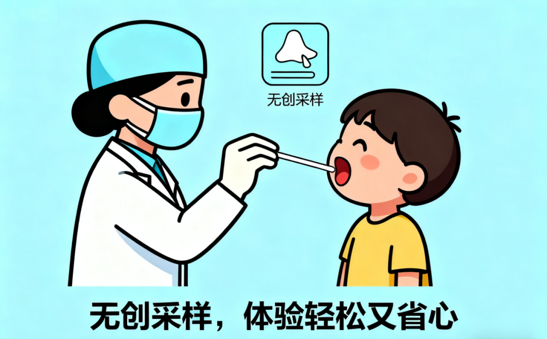 采用咽拭子/鼻咽拭子采样,过程快捷,无需抽血,操作安全便捷,成人与儿童均可轻松配合。