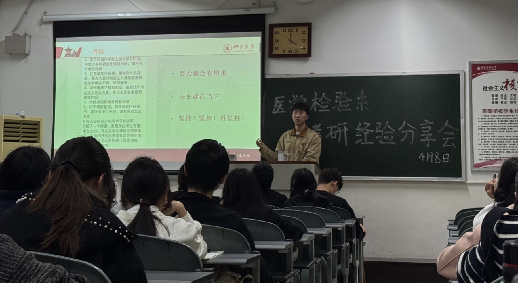 为进一步明确班长工作职责,交流班级管理经验,夯实学风建设,凝聚班级发展合力,4月7日,医学检验系在城北校区明理楼1-6教室召开班长联席会。会议由系学生会组织召开,全体班长参会。
